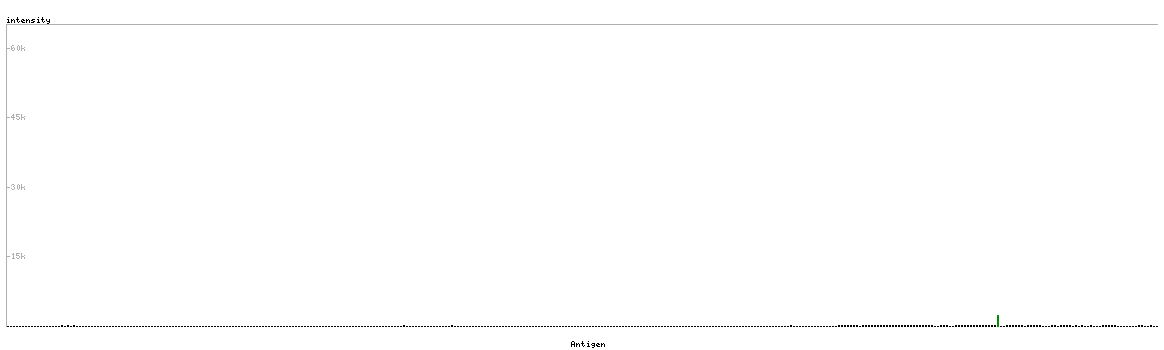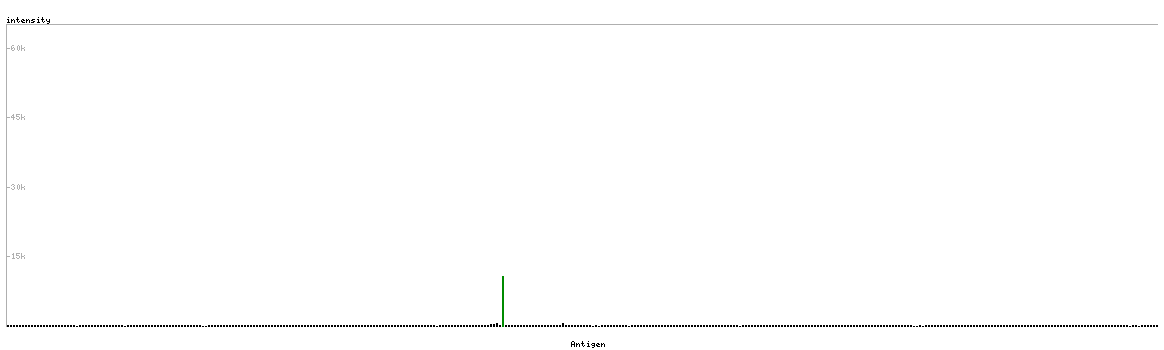 At the top of the view, the position of the antigen (identified by the corresponding HPA identifier) is shown as a green bar. A yellow triangle on the bar indicates a <100% sequence identity to the protein target.