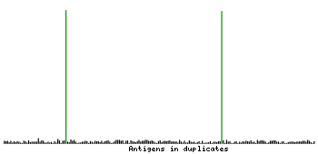 At the top of the view, the position of the antigen (identified by the corresponding HPA identifier) is shown as a green bar. A yellow triangle on the bar indicates a <100% sequence identity to the protein target.