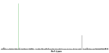 At the top of the view, the position of the antigen (identified by the corresponding HPA identifier) is shown as a green bar. A yellow triangle on the bar indicates a <100% sequence identity to the protein target.