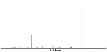 At the top of the view, the position of the antigen (identified by the corresponding HPA identifier) is shown as a green bar. A yellow triangle on the bar indicates a <100% sequence identity to the protein target.
