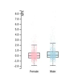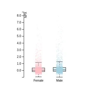 A gene is classified as upregulated in a disease if the average concentration of all samples of that disease is significantly higher (adj P-value<0.005 and NPX difference>=1) than the average concentration of samples of all diseases as measured by PEA . For gender specific diseases the analysis includes only samples corresponding to the same gender from the other diseases.