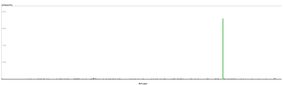 The curve in blue displays the predicted antigenicity i.e. the tendency for different regions of the protein to generate an immune response, with peak regions being predicted to be more antigenic.The curve shows average values based on a sliding window approach using an in-house propensity scale. (read more).