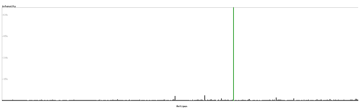 The curve in blue displays the predicted antigenicity i.e. the tendency for different regions of the protein to generate an immune response, with peak regions being predicted to be more antigenic.The curve shows average values based on a sliding window approach using an in-house propensity scale. (read more).
