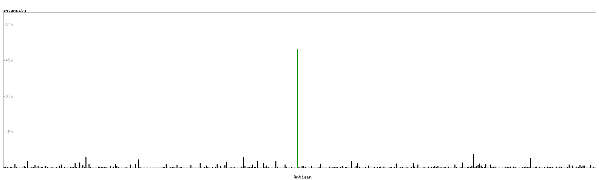 The curve in blue displays the predicted antigenicity i.e. the tendency for different regions of the protein to generate an immune response, with peak regions being predicted to be more antigenic.The curve shows average values based on a sliding window approach using an in-house propensity scale. (read more).