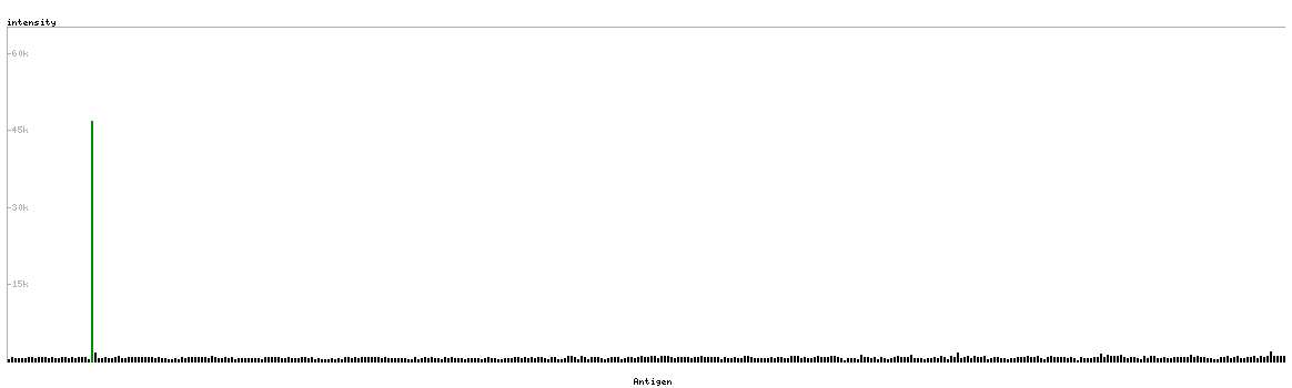The curve in blue displays the predicted antigenicity i.e. the tendency for different regions of the protein to generate an immune response, with peak regions being predicted to be more antigenic.The curve shows average values based on a sliding window approach using an in-house propensity scale. (read more).