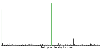 At the top of the view, the position of the antigen (identified by the corresponding HPA identifier) is shown as a green bar. A yellow triangle on the bar indicates a <100% sequence identity to the protein target.