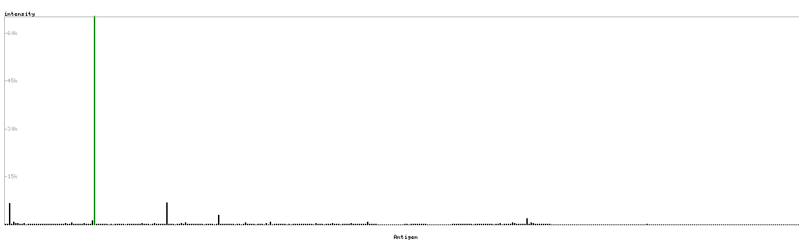 The curve in blue displays the predicted antigenicity i.e. the tendency for different regions of the protein to generate an immune response, with peak regions being predicted to be more antigenic.The curve shows average values based on a sliding window approach using an in-house propensity scale. (read more).