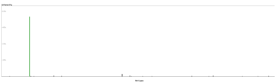 The curve in blue displays the predicted antigenicity i.e. the tendency for different regions of the protein to generate an immune response, with peak regions being predicted to be more antigenic.The curve shows average values based on a sliding window approach using an in-house propensity scale. (read more).