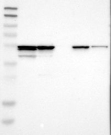 A Western blot analysis is performed on a panel of human tissues and cell lines to evaluate antibody specificity. For antibodies with unreliable result a revalidation using an over-expression lysate is performed.