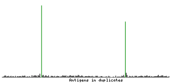 At the top of the view, the position of the antigen (identified by the corresponding HPA identifier) is shown as a green bar. A yellow triangle on the bar indicates a <100% sequence identity to the protein target.