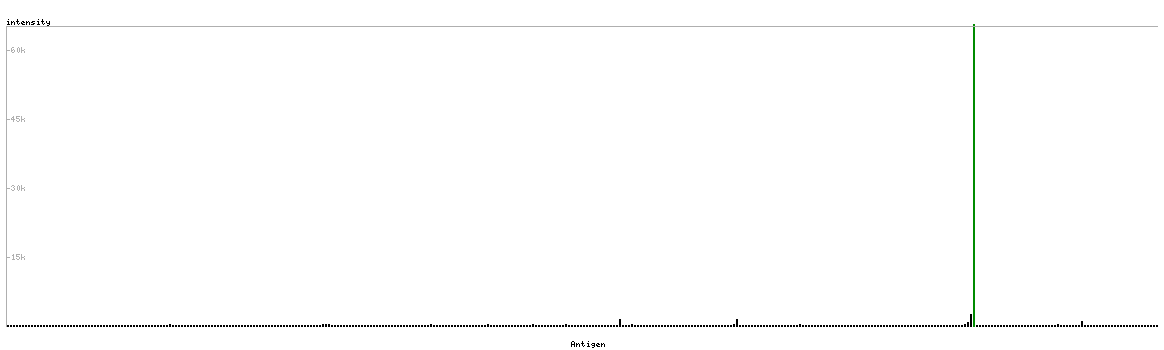 The curve in blue displays the predicted antigenicity i.e. the tendency for different regions of the protein to generate an immune response, with peak regions being predicted to be more antigenic.The curve shows average values based on a sliding window approach using an in-house propensity scale. (read more).