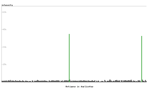 Below the antigens, the maximum percent sequence identity of the protein to all other proteins from other human genes is displayed, using a sliding window of 10 aa residues (HsID 10) or 50 aa residues (HsID 50). The region with the lowest possible identity is always selected for antigen design, with a maximum identity of 60% allowed for designing a single-target antigen (read more).