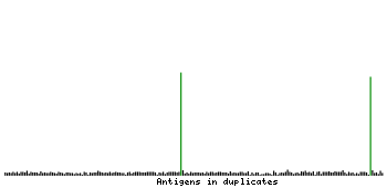 At the top of the view, the position of the antigen (identified by the corresponding HPA identifier) is shown as a green bar. A yellow triangle on the bar indicates a <100% sequence identity to the protein target.