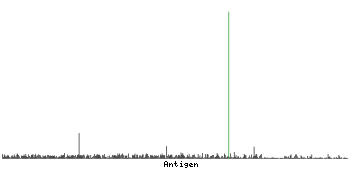 At the top of the view, the position of the antigen (identified by the corresponding HPA identifier) is shown as a green bar. A yellow triangle on the bar indicates a <100% sequence identity to the protein target.