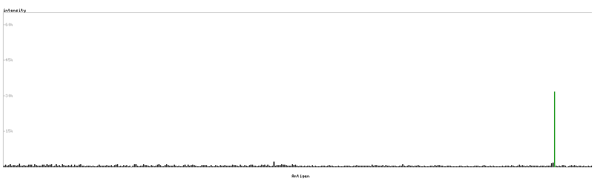 The curve in blue displays the predicted antigenicity i.e. the tendency for different regions of the protein to generate an immune response, with peak regions being predicted to be more antigenic.The curve shows average values based on a sliding window approach using an in-house propensity scale. (read more).