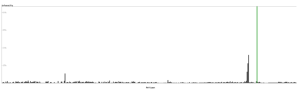 The curve in blue displays the predicted antigenicity i.e. the tendency for different regions of the protein to generate an immune response, with peak regions being predicted to be more antigenic.The curve shows average values based on a sliding window approach using an in-house propensity scale. (read more).