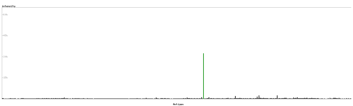 The curve in blue displays the predicted antigenicity i.e. the tendency for different regions of the protein to generate an immune response, with peak regions being predicted to be more antigenic.The curve shows average values based on a sliding window approach using an in-house propensity scale. (read more).