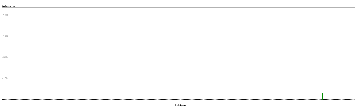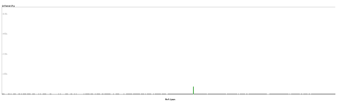 At the top of the view, the position of the antigen (identified by the corresponding HPA identifier) is shown as a green bar. A yellow triangle on the bar indicates a <100% sequence identity to the protein target.