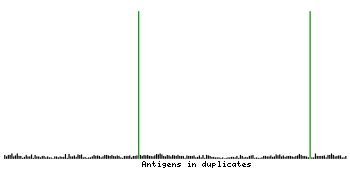 At the top of the view, the position of the antigen (identified by the corresponding HPA identifier) is shown as a green bar. A yellow triangle on the bar indicates a <100% sequence identity to the protein target.
