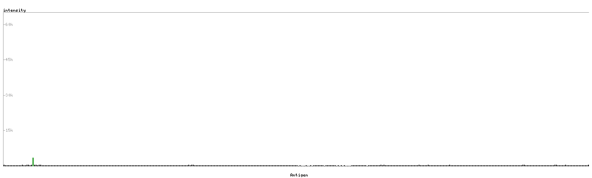 At the top of the view, the position of the antigen (identified by the corresponding HPA identifier) is shown as a green bar. A yellow triangle on the bar indicates a <100% sequence identity to the protein target.