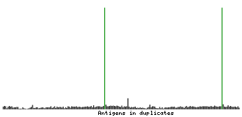At the top of the view, the position of the antigen (identified by the corresponding HPA identifier) is shown as a green bar. A yellow triangle on the bar indicates a <100% sequence identity to the protein target.