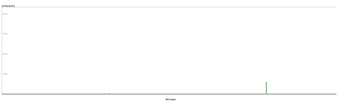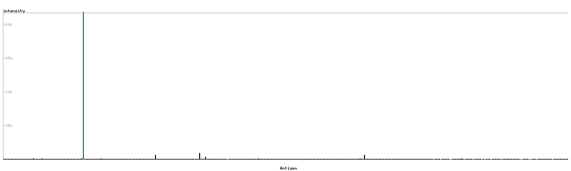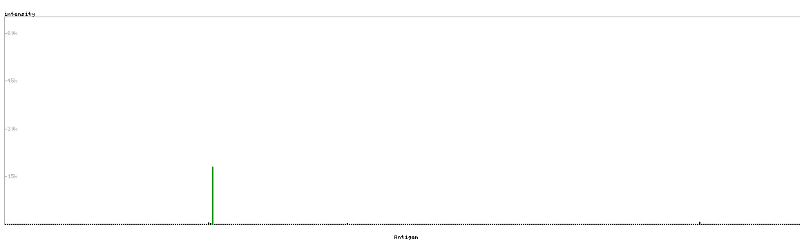 At the top of the view, the position of the antigen (identified by the corresponding HPA identifier) is shown as a green bar. A yellow triangle on the bar indicates a <100% sequence identity to the protein target.