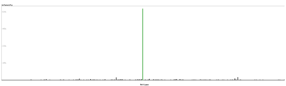 The curve in blue displays the predicted antigenicity i.e. the tendency for different regions of the protein to generate an immune response, with peak regions being predicted to be more antigenic.The curve shows average values based on a sliding window approach using an in-house propensity scale. (read more).