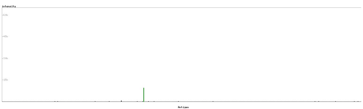 At the top of the view, the position of the antigen (identified by the corresponding HPA identifier) is shown as a green bar. A yellow triangle on the bar indicates a <100% sequence identity to the protein target.