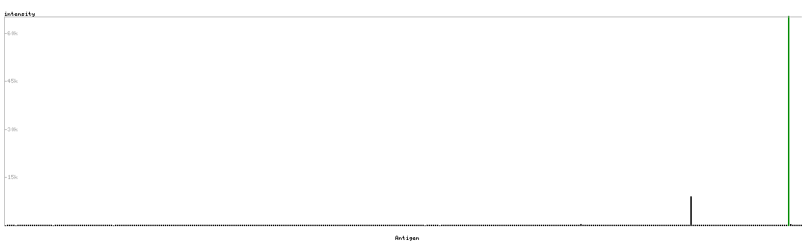 The curve in blue displays the predicted antigenicity i.e. the tendency for different regions of the protein to generate an immune response, with peak regions being predicted to be more antigenic.The curve shows average values based on a sliding window approach using an in-house propensity scale. (read more).