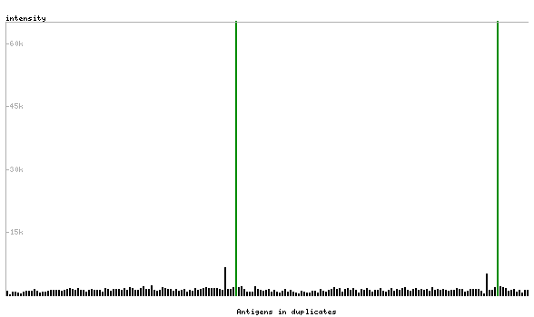 The curve in blue displays the predicted antigenicity i.e. the tendency for different regions of the protein to generate an immune response, with peak regions being predicted to be more antigenic.The curve shows average values based on a sliding window approach using an in-house propensity scale. (read more).