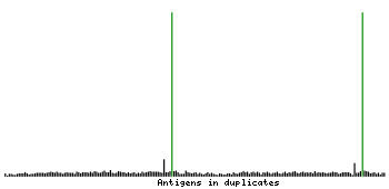 At the top of the view, the position of the antigen (identified by the corresponding HPA identifier) is shown as a green bar. A yellow triangle on the bar indicates a <100% sequence identity to the protein target.
