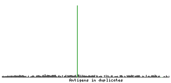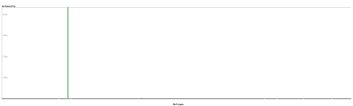 At the top of the view, the position of the antigen (identified by the corresponding HPA identifier) is shown as a green bar. A yellow triangle on the bar indicates a <100% sequence identity to the protein target.