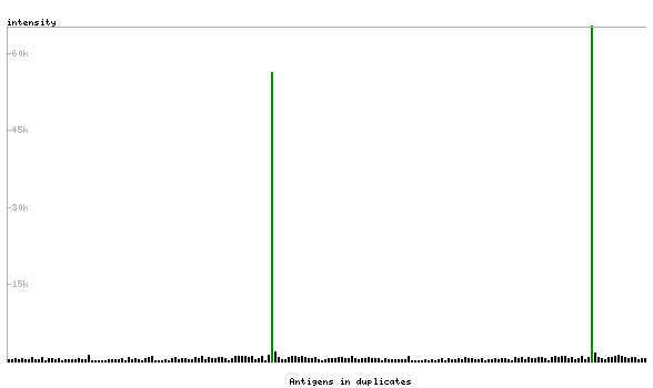 Below the antigens, the maximum percent sequence identity of the protein to all other proteins from other human genes is displayed, using a sliding window of 10 aa residues (HsID 10) or 50 aa residues (HsID 50). The region with the lowest possible identity is always selected for antigen design, with a maximum identity of 60% allowed for designing a single-target antigen (read more).
