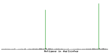 At the top of the view, the position of the antigen (identified by the corresponding HPA identifier) is shown as a green bar. A yellow triangle on the bar indicates a <100% sequence identity to the protein target.