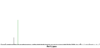 At the top of the view, the position of the antigen (identified by the corresponding HPA identifier) is shown as a green bar. A yellow triangle on the bar indicates a <100% sequence identity to the protein target.