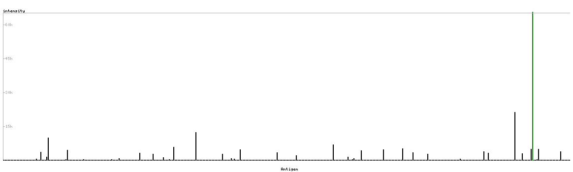The curve in blue displays the predicted antigenicity i.e. the tendency for different regions of the protein to generate an immune response, with peak regions being predicted to be more antigenic.The curve shows average values based on a sliding window approach using an in-house propensity scale. (read more).