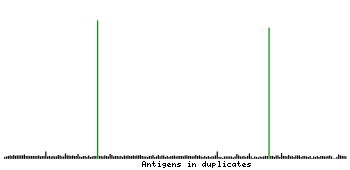 At the top of the view, the position of the antigen (identified by the corresponding HPA identifier) is shown as a green bar. A yellow triangle on the bar indicates a <100% sequence identity to the protein target.