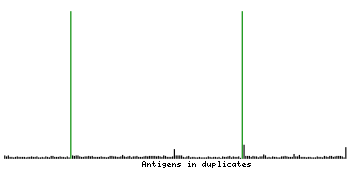 At the top of the view, the position of the antigen (identified by the corresponding HPA identifier) is shown as a green bar. A yellow triangle on the bar indicates a <100% sequence identity to the protein target.