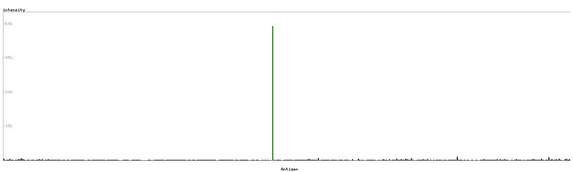 The curve in blue displays the predicted antigenicity i.e. the tendency for different regions of the protein to generate an immune response, with peak regions being predicted to be more antigenic.The curve shows average values based on a sliding window approach using an in-house propensity scale. (read more).