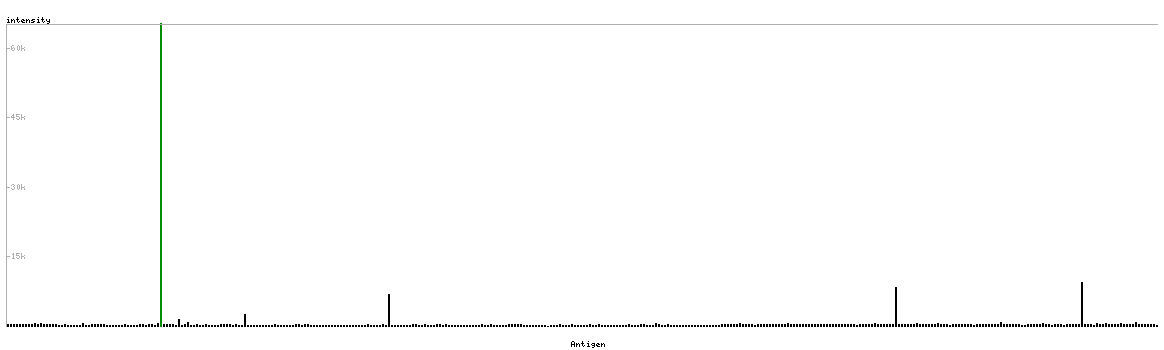 The curve in blue displays the predicted antigenicity i.e. the tendency for different regions of the protein to generate an immune response, with peak regions being predicted to be more antigenic.The curve shows average values based on a sliding window approach using an in-house propensity scale. (read more).