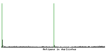 At the top of the view, the position of the antigen (identified by the corresponding HPA identifier) is shown as a green bar. A yellow triangle on the bar indicates a <100% sequence identity to the protein target.
