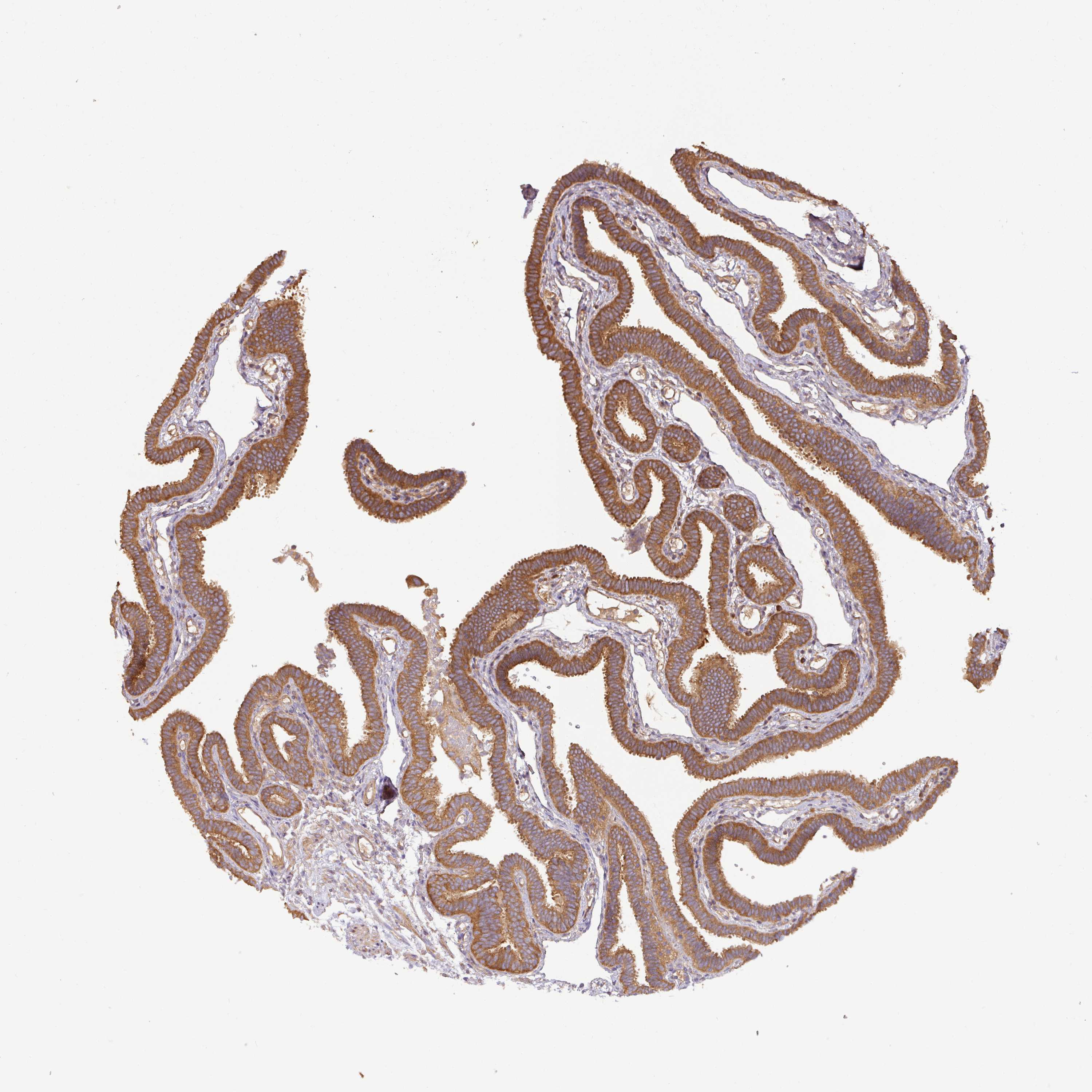 Ascending - the staining intensity is stronger in apical enterocytes (towards the lumen) compared to enterocytes in the crypts (gland based)