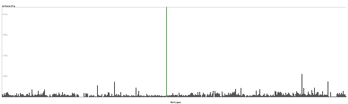 The curve in blue displays the predicted antigenicity i.e. the tendency for different regions of the protein to generate an immune response, with peak regions being predicted to be more antigenic.The curve shows average values based on a sliding window approach using an in-house propensity scale. (read more).