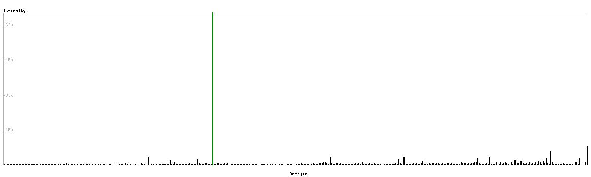 The curve in blue displays the predicted antigenicity i.e. the tendency for different regions of the protein to generate an immune response, with peak regions being predicted to be more antigenic.The curve shows average values based on a sliding window approach using an in-house propensity scale. (read more).