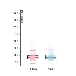 A gene is classified as upregulated in a disease if the average concentration of all samples of that disease is significantly higher (adj P-value<0.005 and NPX difference>=1) than the average concentration of samples of all diseases as measured by PEA . For gender specific diseases the analysis includes only samples corresponding to the same gender from the other diseases.