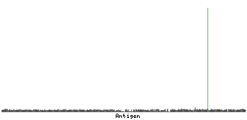 At the top of the view, the position of the antigen (identified by the corresponding HPA identifier) is shown as a green bar. A yellow triangle on the bar indicates a <100% sequence identity to the protein target.