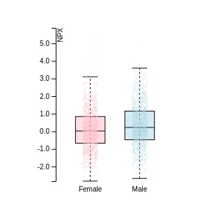 A gene is classified as upregulated in a disease if the average concentration of all samples of that disease is significantly higher (adj P-value<0.005 and NPX difference>=1) than the average concentration of samples of all diseases as measured by PEA . For gender specific diseases the analysis includes only samples corresponding to the same gender from the other diseases.