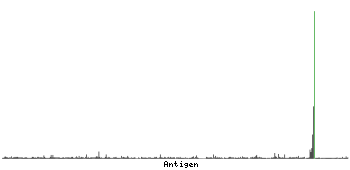 The curve in blue displays the predicted antigenicity i.e. the tendency for different regions of the protein to generate an immune response, with peak regions being predicted to be more antigenic.The curve shows average values based on a sliding window approach using an in-house propensity scale. (read more).