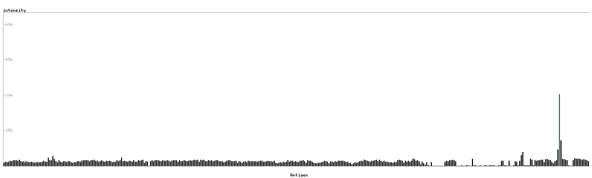 The curve in blue displays the predicted antigenicity i.e. the tendency for different regions of the protein to generate an immune response, with peak regions being predicted to be more antigenic.The curve shows average values based on a sliding window approach using an in-house propensity scale. (read more).