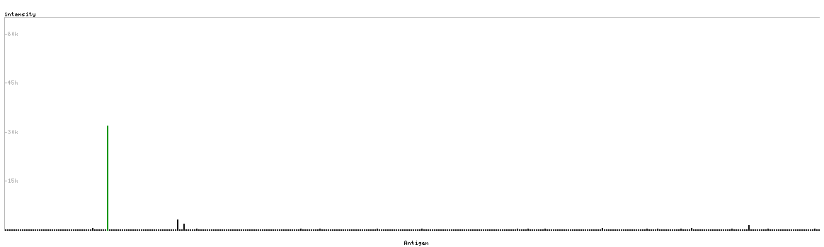 The curve in blue displays the predicted antigenicity i.e. the tendency for different regions of the protein to generate an immune response, with peak regions being predicted to be more antigenic.The curve shows average values based on a sliding window approach using an in-house propensity scale. (read more).